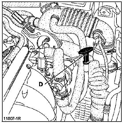 Vidanger la transmission automatique par aspiration par le tube de jauge (D) (voir chapitre concerné).