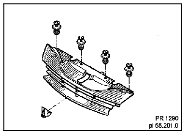 Faire levier à l'aide d'une clé à oeil (de 17) sur l'agrafe centrale de façon à dégager la grille de calandre vers le haut.