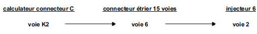 calculateur (connecteur C) voie B1 → voie 1 du capteur arbre à cames N'1 calculateur (connecteur C) voie C1 → voie 2 du capteur arbre à cames N'1 calculateur (connecteur C) voie B2 → voie 3 du capteur arbre à cames N'1